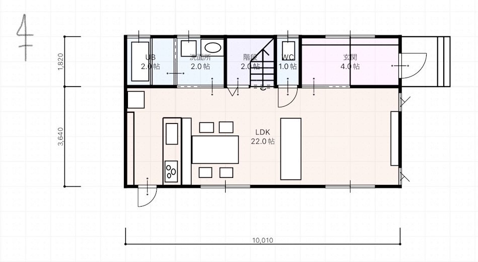 扉が動線と干渉していた問題とリビングとトイレがつながっていた問題を解決しました。