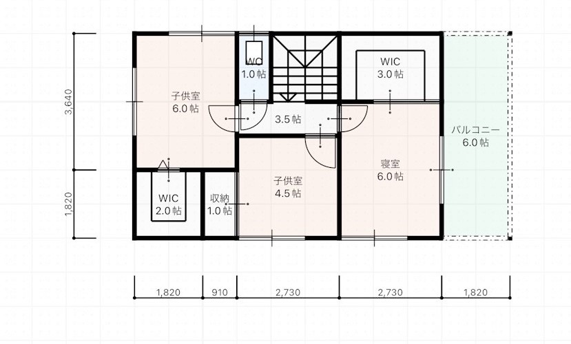 1階にLDKと水回り、2階に主寝室と子供部屋2部屋とトイレです。